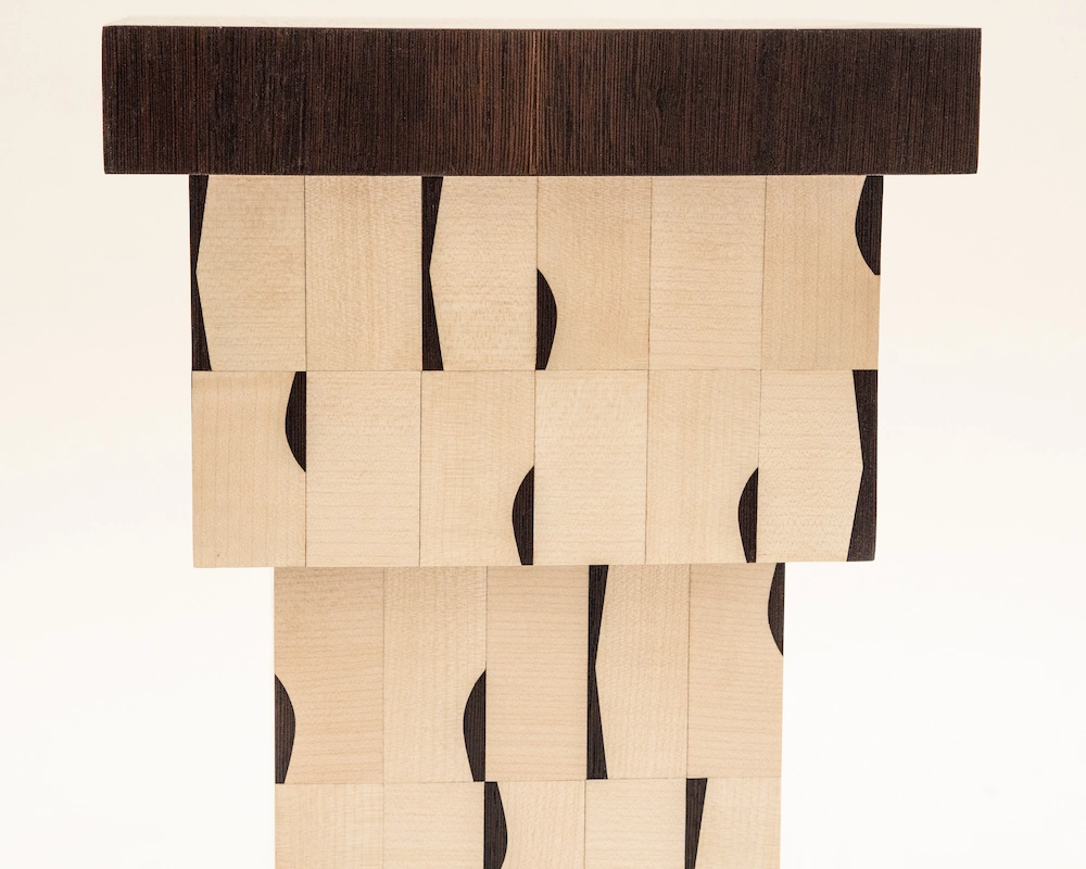 Hermine Torikian is a designer-artisan specializing in contemporary marquetry. She focuses on treating wood as a dynamic, living surface where designs are driven by movement, texture, and powerful contrast. Building on her background in architecture and her subsequent training in Parisian cabinetmaking, her work explores the delicate balance between the solidity and suppleness of wood, constantly seeking harmony between vivid colors and natural shades.